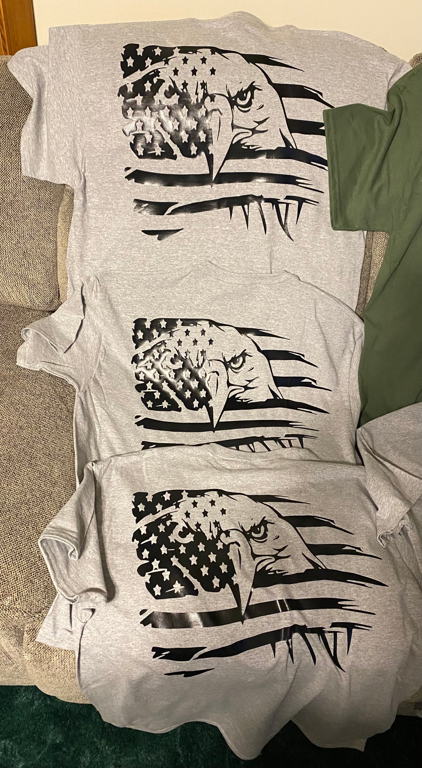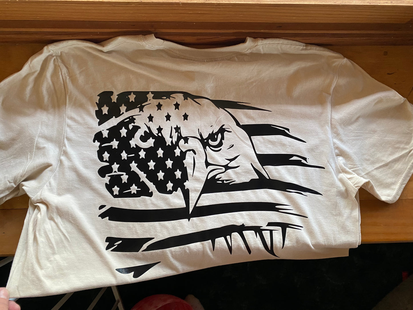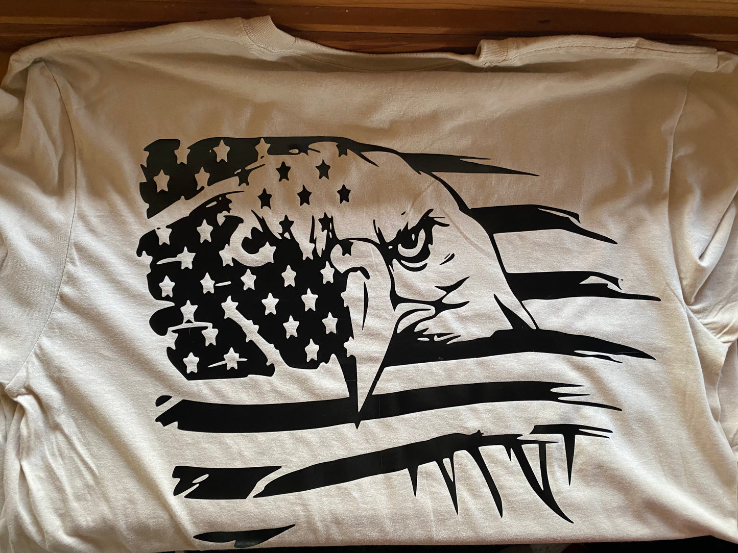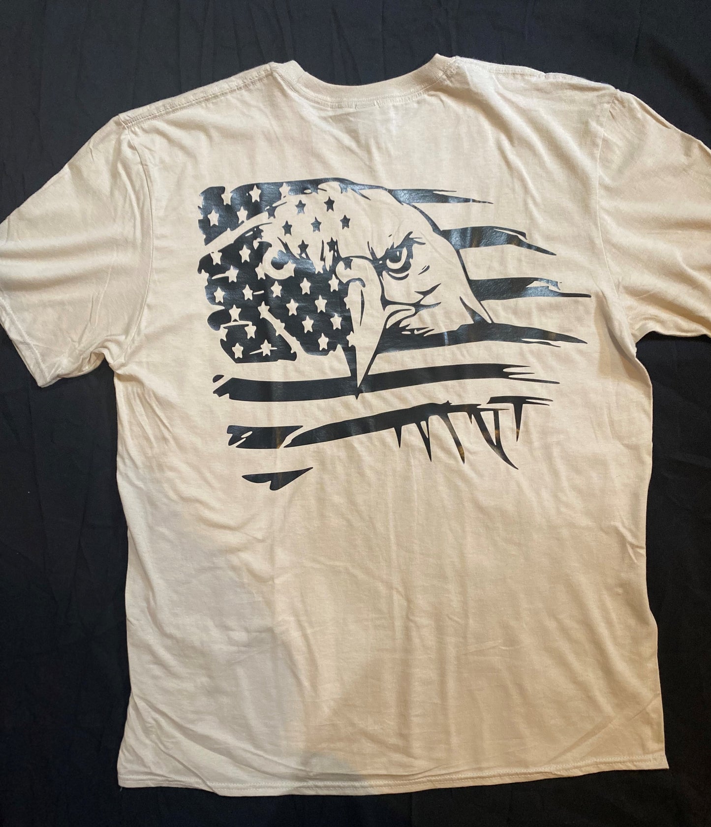This patriotic t-shirt is a unique combination of the bald Eagle and the American flag.